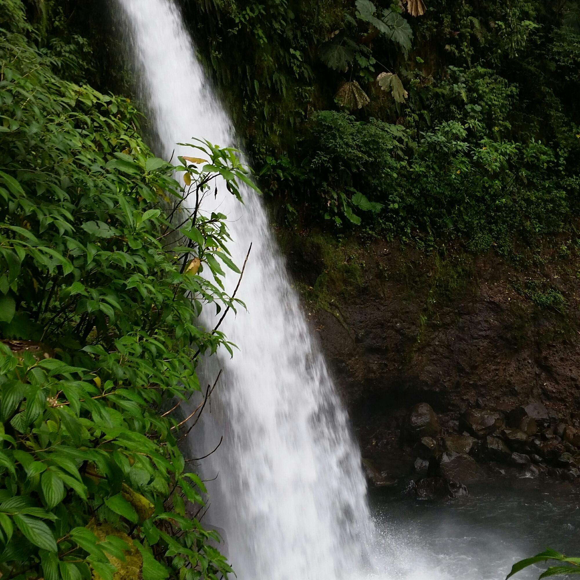 Polo o pasta.. mit dieser Frage sieht sich im Laufe eines Iberia Flugs jeder Passagier konfrontiert. Pasta war meine Wahl auf dem Weg in mein persönliches Land des Auftankens, der schönen Wolkentürme und herrlichsten Regenschauer. Nach einer unruhigen ersten Nacht, übermüdet und aufgekratzt, gierig nach dem ersten gallo pinto, beginnt der Tag mit der Fahrt zum Vulkan Poas. Fetzblau startet die Fahrt in San José. Erste cumuli bilden sich im Lauf der Fahrt über den Vulkanen und dem Talamancagebirge. Beim ersten Stop auf einer kleinen Kaffeeplantage bilden sich wunder schöne Haufenwolken die immer mehr werden. Meine Geschenkswolken also… sehr schön. Wer auch immer dafür verantwortlich war. DANKE ich hab mich sehr gefreut. Die Pflanzung selbst nach der Ernte anzusehen und mehr über die Prozesse von der pflanze zum schwarzen Gold aus erster Hand zu erfahren macht Lust auf eine Kostprobe. Stark und intensiv und säuerlich war ich danach hellwach und voller Tatendrang. Die richtige Basis für einen 3 h Spaziergang am Vulkan,der leider im Nebel eingehüllt war (Vulkane tendieren auffällig oft dazu sich in Wolken zu hüllen wenn ich auftauche…). Ein Krater war daher nicht zu sehen die Stimmung im nebligen, dichten Wald dafür umso besser. Blüteninnenleben unter die Lupe nehmen, Bäume und ihre Aufsitzer bestimmen… langweilig wird einem da nicht. Der Weg nach La Fortuna führt am Wasserfall La Paz vorbei. Ich könnte stundenlang dem Wasser beim Fallen zusehen. Bei einer Vögelfütterstation werden viele Bilder für die Vogelliste gemacht, die dann nach dem Essen noch fachgemäß bestimmt werden sollen. Die Farbpalette der Gefieder ist so vielfältig und faszinierend.