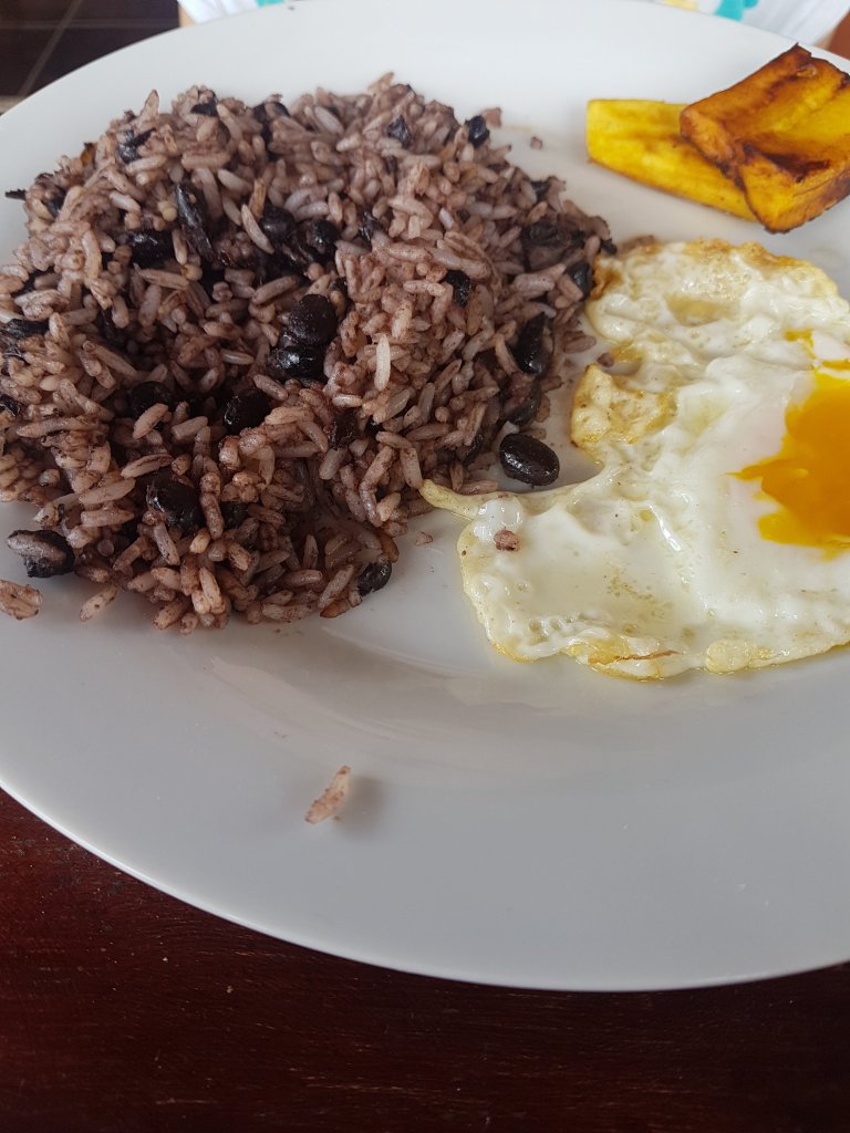 Landestypisches Gericht zum Frühstück: Gallo Pinto, also Reis mit Bohnen