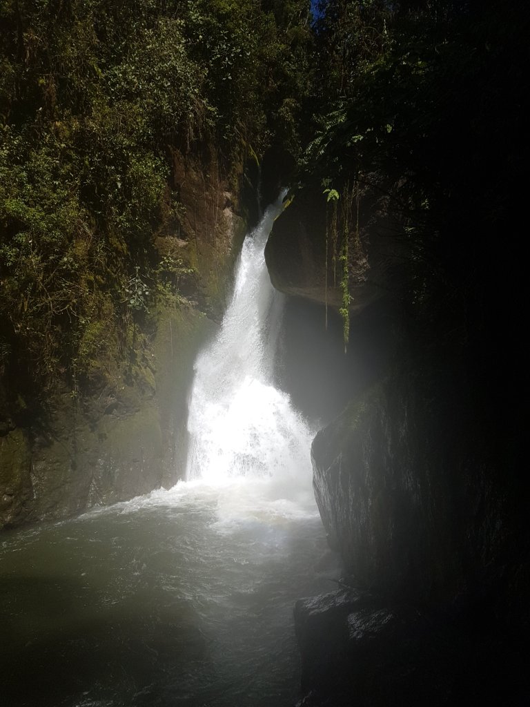 Und am nächsten Morgen ungewöhnlich blauer Himmel. Perfekt für eine Wanderung durch den Quetzales National Park zum Wasserfall.